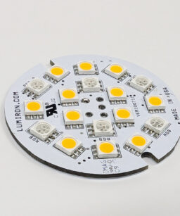 The LUMIRON Rondo LMT-50R3G is a high-grade circular LED Round Module. Firstly, designed to produce outstanding dimmable lighting solutions that are easy to install in new or retrofit in existing fixtures. Also, it is a 2-inch innovative solid-state lighting solution for design, commercial/industrial, and marine applications. Secondly, this 12 LED Round Module has excellent lighting applications in multiple whites or colors while reducing the impact on the environment.